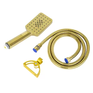 ( طلب مسبق ) محموعة سماعة بخرطوم مقاس 150 سم و سماعة مستطيلة مقاس 12 × 8 سم بعدد 2 نظام اللون ذهبى منتج مستورد