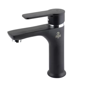 خلاط حوض 1001 Resp بقنطرة عالية منحنية بإرتفاع 19.5 سم و بطول 20 سم بمقبض للتحكم فى المياة اللون أسود مط منتج مستورد
