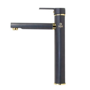 ( طلب مسبق ) خلاط حوض ديكور 3008B بقنطرة عالية بإرتفاع 24 سم و بطول 15 سم و مقبض مسلوب اللون أسود بمقبض ذهبى