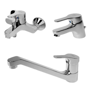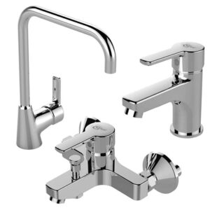 طقم خلاطات سليم لاين 3 قطع (خلاط بانيو 8587 و خلاط حوض 8577 و خلاط مطبخ شجرة 8592 ) اللون كروم من ايديال ستاندرد