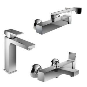 طقم خلاطات سليم لاين 3 قطع (خلاط بانيو 8587 و خلاط حوض 8577 و خلاط مطبخ حائطى 8599 ) اللون كروم من ايديال ستاندرد