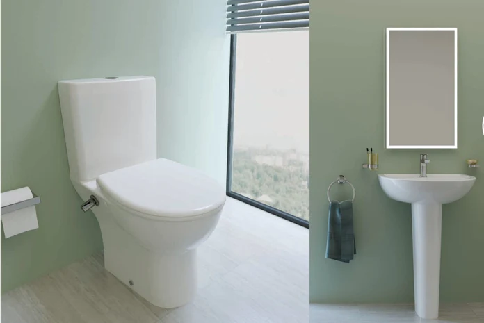 طقم حمام روزيتا مرحاض كامل ذاتى الغلق و حوض 60 سم العامود الطويل من سانى بيور