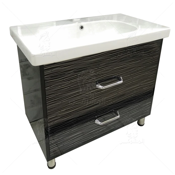 وحدة موبيليا 2 درج أسود مقلم فضي لامع دى كود يشمل الحوض مقاس 85 سم من المشرقى