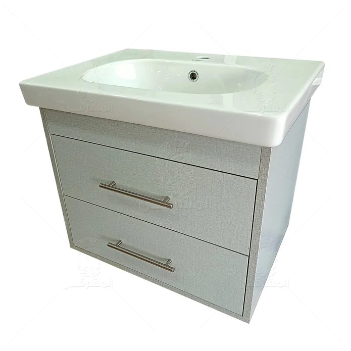 وحدة موبيليا 2 درج اللون كتان رمادى مط دى كود يشمل الحوض مقاس 65 سم من المشرقى
